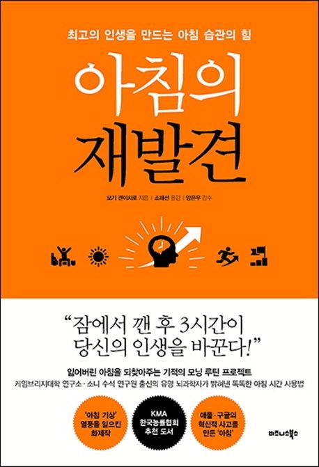 이 책은 뇌과학자인 저자가 뇌를 기쁘게 하는 아침 시간 활용법을 제시하며 독자로 하여금 행복한 아침으로 하루를 시작하도록 해주는 책입니다. 두뇌회전이 가장 빠른 아침 시간을 효율적으로 활용해 일의 능률을 높이려면, 뇌에 쾌감을 주는 습관을 들여야 한다고 합니다. 그리고 뇌가 가장 즐거워하는 일이란 바로 '꾸준한 호기심'입니다. 아침이야말로 호기심을 불러일으키기에 가장 적합한 시간대로, 자신이 늘 관심을 가지고 있던 분야에 도전하거나 부족하다고 느꼈던 일에 부딪쳐보면 좋을 것입니다. 잠에서 깨어난 직후의 아침 두뇌는 전날의 피로와 스트레스가 해소된 상태이고 새로운 정보를 받아들일 준비가 되어 있는 상태로서 새로운 공부나 일을 시작하기에 적절한 시간대라고 할 수 있습니다. 아침에 잘 일어나기 위해서는 저절로 몸이 움직일 수 있는 자기만의 아침 루틴을 만드는 것이 좋습니다. 늦은 시간까지 일하거나, 자기 전 침대에서 스마트폰을 보다가 늦게 자는 현대인들이 많은데, 밤의 뇌에게 또 새로운 생각과 정보들을 주지 말고 정보와 기억을 정리할 충분한 시간을 주는 것이 필요합니다. 밤의 뇌는 쉬게 하고 활력이 넘치는 아침 뇌는 높은 사고를 할 수 있도록 하는 것입니다. 아침에 일어나면 되도록 커튼을 열고 햇빛을 충분히 쐬어 뇌에 새로운 활력을 불어넣도록 하는 것이 좋습니다. 또한 아침에는 되도록 규칙적으로 밥 먹는 습관을 들이는 것이 중요합니다. 영양상 균형 잡힌 일정한 양의 식사를 매일 규칙적으로 먹어야 더 건강에 좋습니다.
