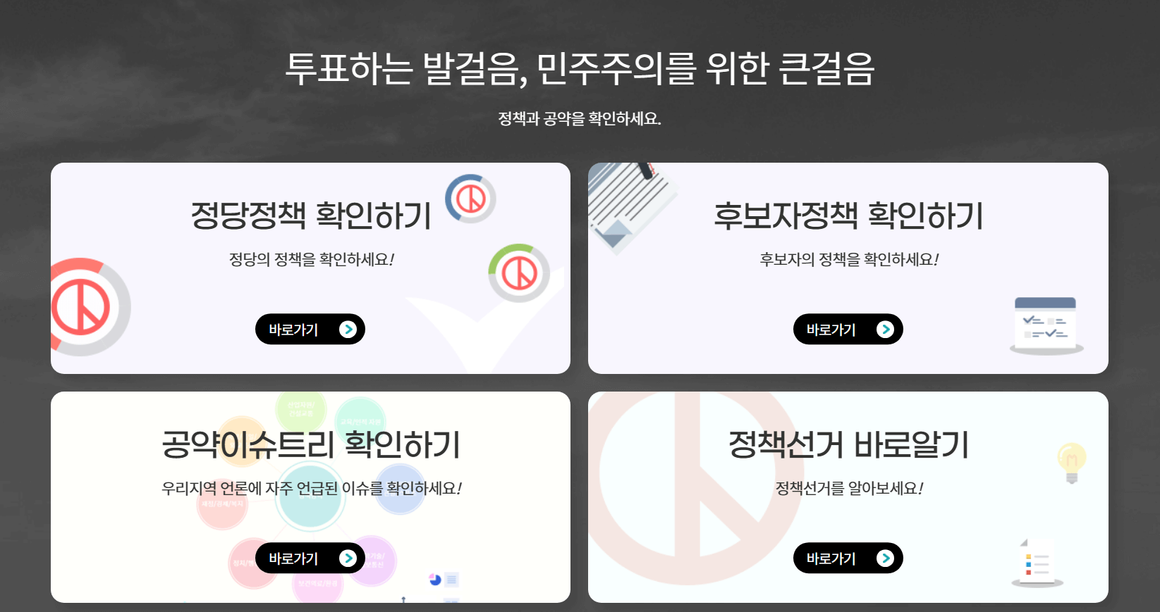 집으로 배송된 선거공보를 미처 읽어보지 못했더라도, 이제 손 안에서 인터넷으로 모두 확인할 수 있는 시대가 되었습니다. 정보가 넘쳐나는 시대에 정보를 그냥 흘려보내지 마시고 꼭 내 것으로 만들어서 좋은 선택을 하는데 도움이 되시길 바라겠습니다. 소중한 한표 꼭 행사하시고 원하시는 투표결과가 나오길 기원합니다!