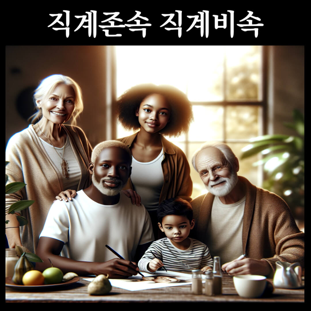 직계존속에서 '직계'는 '친자관계에 의해 혈연이 직접적으로 이어진 계통'이라는 의미입니다. 혈연이 아닌 배우자, 며느리, 사위 등은 '직계'의 범위에 속하지 않으며, 혈연이라고 하더라도 자신과 같은 항렬인 형제, 자매는 삼촌, 고모, 외삼촌, 이모 등의 친족과 같이 '방계'가족으로 구분됩니다.