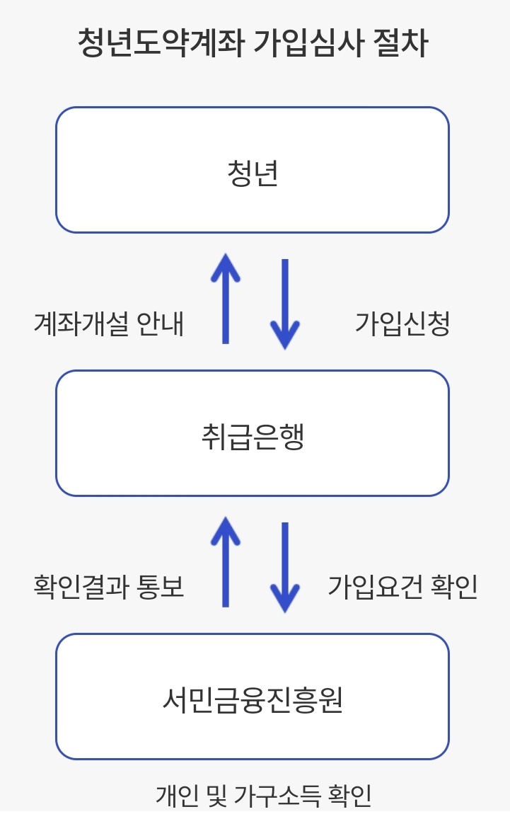 매월 초 취급 은행 앱에서 가입신청을 할 수 있으며, 신청 후 약 2주동안 서민금융진흥원에서 심사를 거쳐 다음달 초에 계좌를 개설할 수 있습니다.