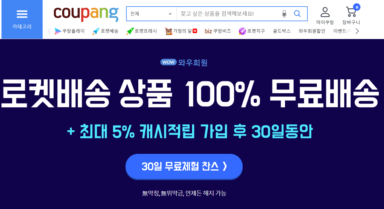 쿠팡 와우 회원은 쿠팡의 로켓 프레쉬 제품은 무료 배송이 되고 적립액도 크고 할인율도 높아서 유료회원이 되어도 좋은 점이 많지만, 혹시 원치 않는 경우 30일 체험만 하고 바로 해지가 가능하므로 신청해보시면 좋을 것입니다.